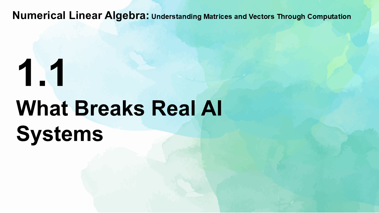 Many AI failures come from numerical instability, not algorithms. This guide explains what actually breaks AI systems and why numerical linear algebra matters.