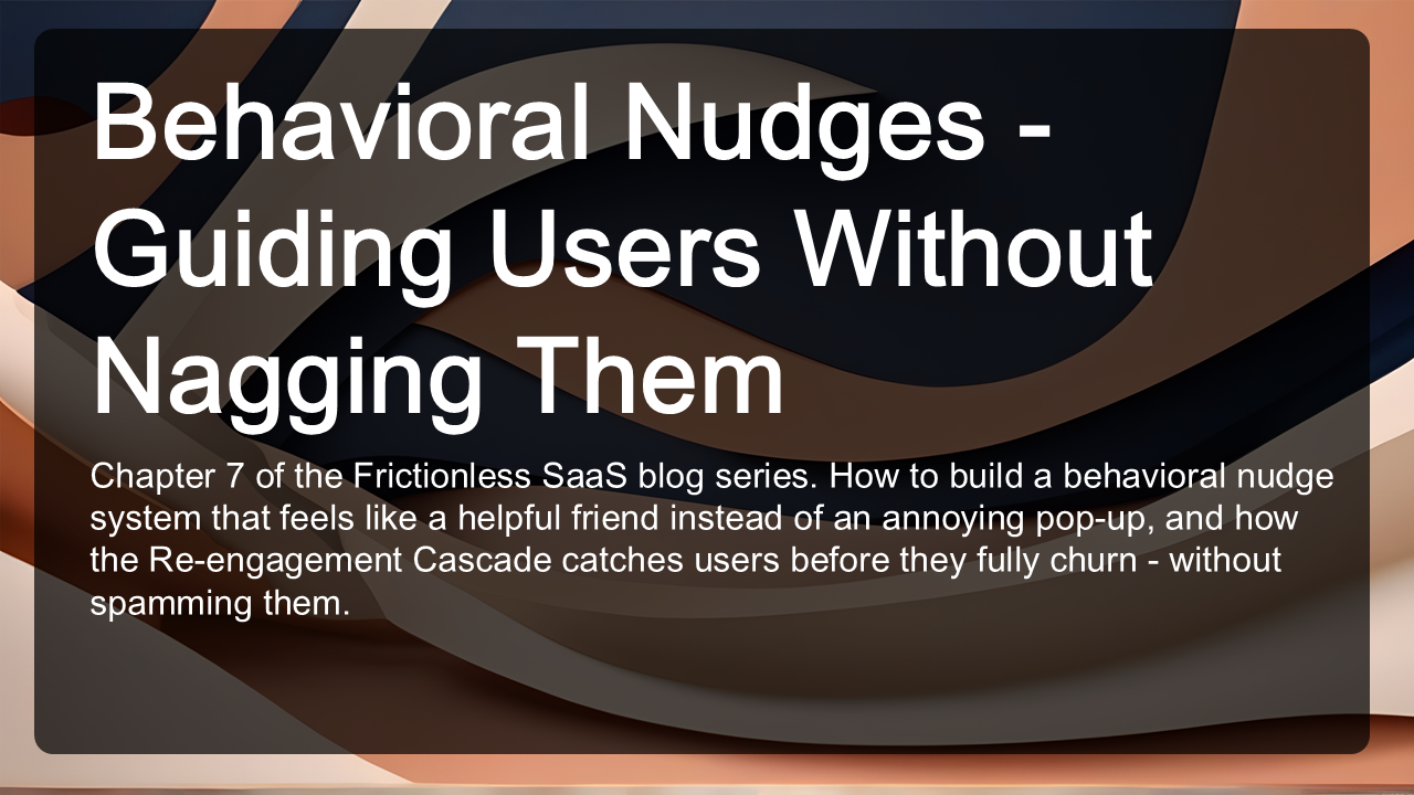 Chapter 7 of the Frictionless SaaS blog series. How to build a behavioral nudge system that feels like a helpful friend instead of an annoying pop-up, and how the Re-engagement Cascade catches users before they fully churn - without spamming them.