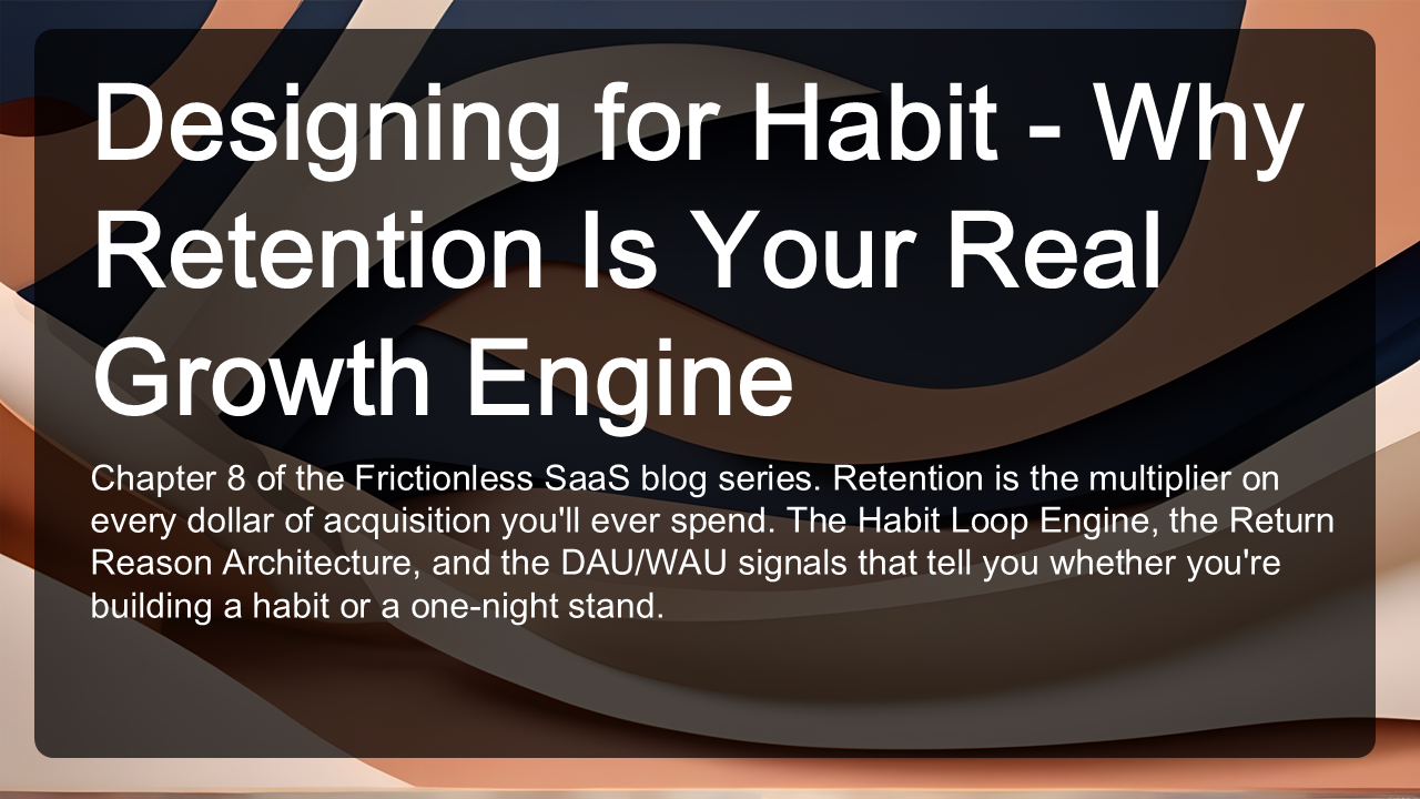 Chapter 8 of the Frictionless SaaS blog series. Retention is the multiplier on every dollar of acquisition you'll ever spend. The Habit Loop Engine, the Return Reason Architecture, and the DAU/WAU signals that tell you whether you're building a habit or a one-night stand.