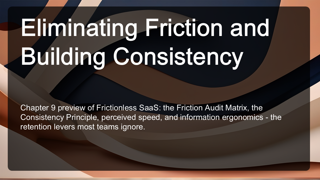 Chapter 9 preview of Frictionless SaaS: the Friction Audit Matrix, the Consistency Principle, perceived speed, and information ergonomics - the retention levers most teams ignore.