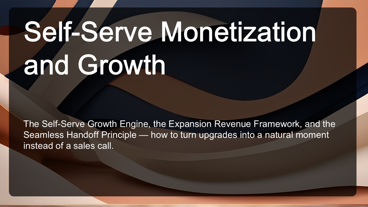 The Self-Serve Growth Engine, the Expansion Revenue Framework, and the Seamless Handoff Principle — how to turn upgrades into a natural moment instead of a sales call.