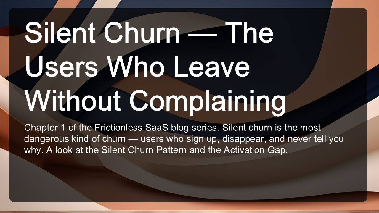 Chapter 1 of the Frictionless SaaS blog series. Silent churn is the most dangerous kind of churn — users who sign up, disappear, and never tell you why. A look at the Silent Churn Pattern and the Activation Gap.