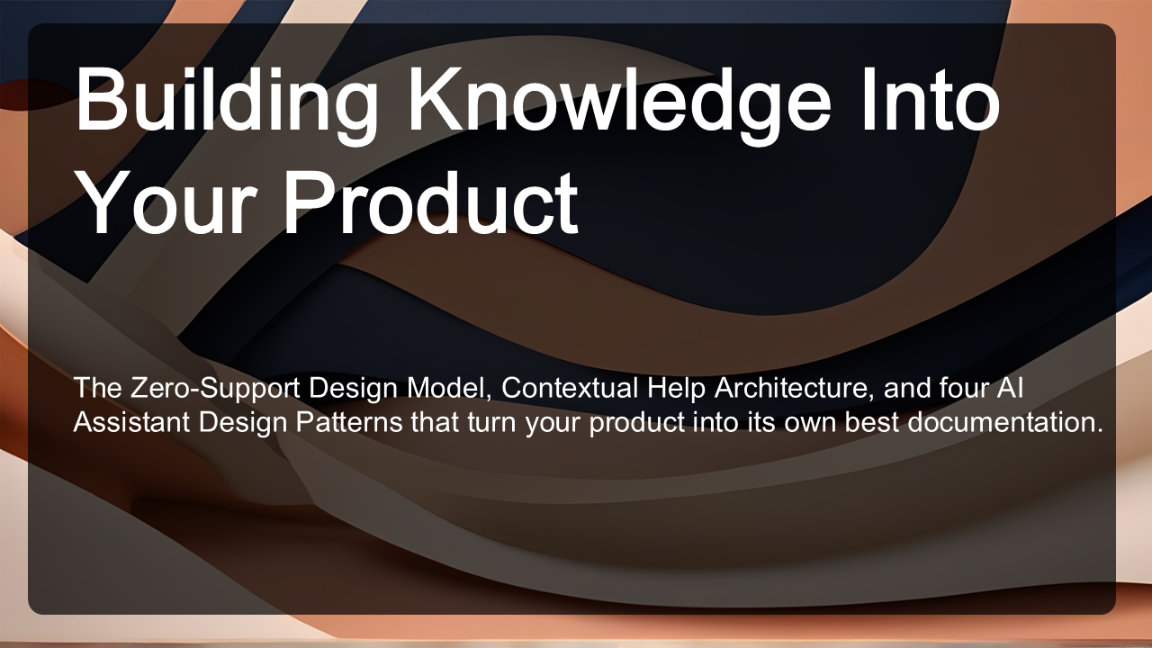 The Zero-Support Design Model, Contextual Help Architecture, and four AI Assistant Design Patterns that turn your product into its own best documentation.