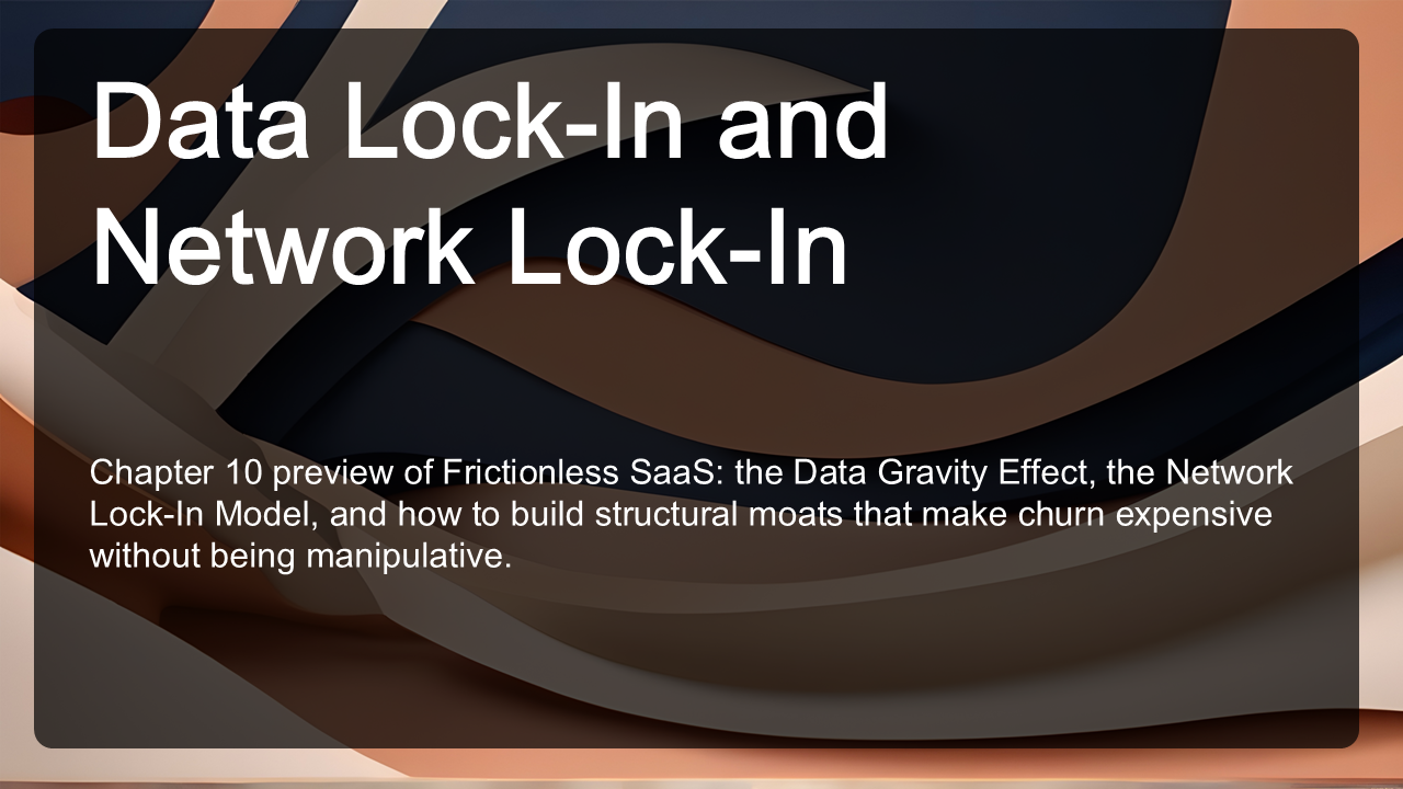 Chapter 10 preview of Frictionless SaaS: the Data Gravity Effect, the Network Lock-In Model, and how to build structural moats that make churn expensive without being manipulative.
