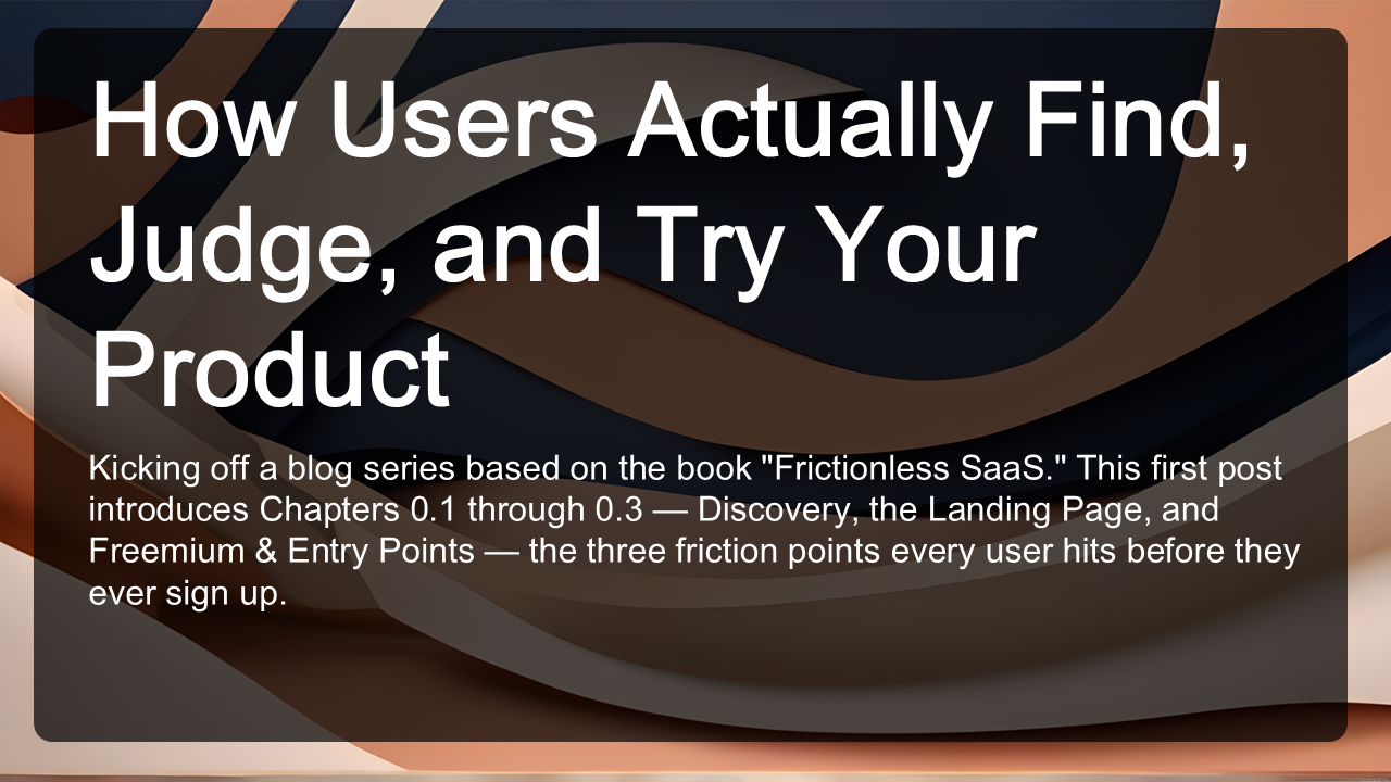 Kicking off a blog series based on the book "Frictionless SaaS." This first post introduces Chapters 0.1 through 0.3 — Discovery, the Landing Page, and Freemium & Entry Points — the three friction points every user hits before they ever sign up.