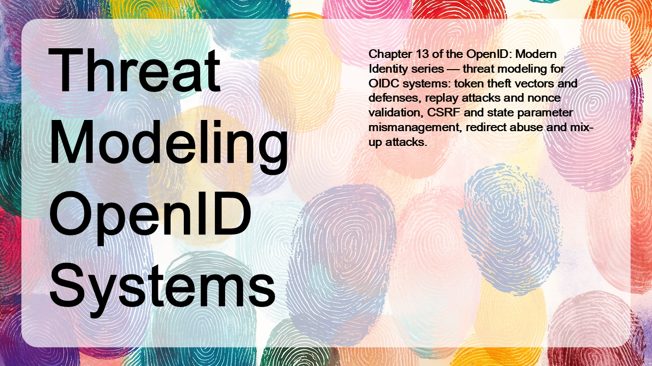 Chapter 13 of the OpenID: Modern Identity series — threat modeling for OIDC systems: token theft vectors and defenses, replay attacks and nonce validation, CSRF and state parameter mismanagement, redirect abuse and mix-up attacks.